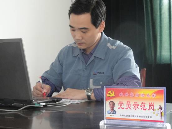 為激勵先進,樹立典型,激發黨員的開拓創新、敬業奉獻精神,弘揚一個黨員一面旗的先鋒作用,全面提升黨員隊伍業務素質,增強黨員的責任意識,發揮每個黨員的工作積極性和先進性,使黨員在工作崗位上充分發揮黨員的先鋒模范帶頭作用,增強企業凝聚力,中鋼天源通力磁材有限公司黨支部于20119月份全面開展“共產黨員示范崗”的活動。