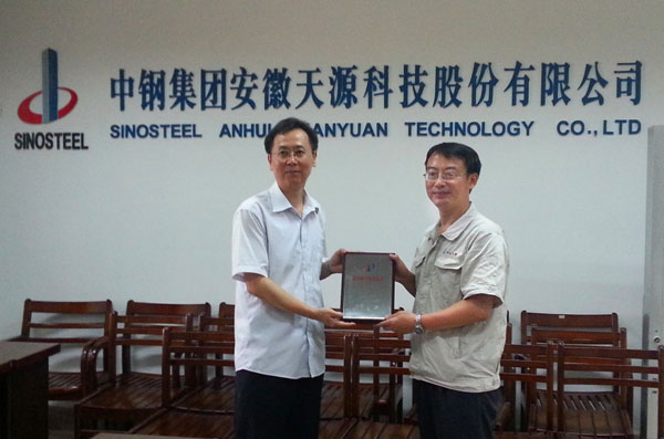 2013年8月27日,在馬鞍山市知識產權局秦玉保局長的陪同下,安徽省知識產權局狄勇副局長、俞純處長、張國峰副處長一行蒞臨中鋼天源進行知識產權工作的調研,并為公司頒發了2012年省級優秀獎獎牌與證書。