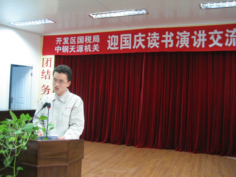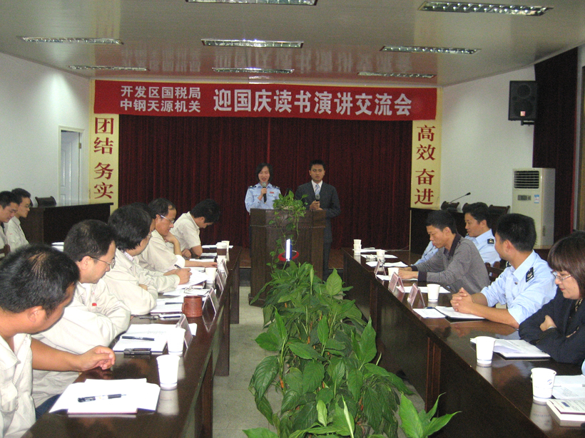 演講交流會結束時,中鋼天源黨委書記、董事長洪石笙和開發區國稅局局長劉二八高度贊揚了演講者的精彩表現,雙方領導都表示,此次活動增強了雙方的溝通,加強了雙方的了解,提高了員工的素養,要將雙方活動繼續下去,以此次活動為新起點,并創新活動形式,以更加豐富多彩的活動形式開展“創先爭優”的共建活動,為雙方共創文明、和諧、發展搭建一個平臺,通過雙方共建活動,達到“稅企共建,同創文明,永葆先進,和諧發展”的總體目標。