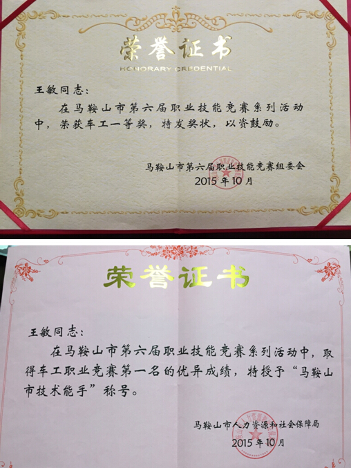 近日,從馬鞍山市人力資源和社會保障局傳來喜訊,中鋼天源機(jī)械廠金加工班組王敏同志在市第六屆職業(yè)技能競賽系列活動中取得車工職業(yè)競賽第一名的優(yōu)異成績,獲車工一等獎,并被授予“馬鞍山市技術(shù)能手”稱號。