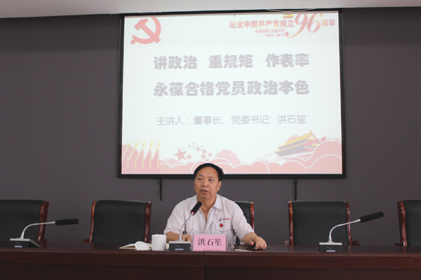 中鋼天源董事長、黨委書記洪石笙作《講政治、重規矩、作表率,永葆合格黨員政治本色》的專題黨課報告,報告從“講政治是合格黨員的根本要求、重規矩是合格黨員的基本底線、作表率是合格黨員的根本落腳點三個方面”進行了講解,要求全體黨員要進一步增強發展的信心,嚴以修身、勇于負責、敢于擔當,做到“政治合格、執行紀律合格、品德合格、發揮作用合格”,不忘初心,永葆合格黨員政治本色,充分發揮先鋒模范作用,抓好當期生產經營,千百百計完成今年目標任務,創造更好業績。