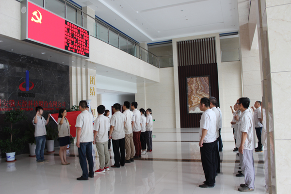 會議首先進行了入黨宣誓,8名新發展的預備黨員面向黨旗進行了莊嚴的入黨宣誓,與會全體黨員共同重溫了入黨誓詞,大會號召全體黨員要牢記誓詞,堅定信念,凝心聚力、攻堅克難,以實際行動開創中鋼天源發展的新局面,以優異成績迎接黨的十九大勝利召開。