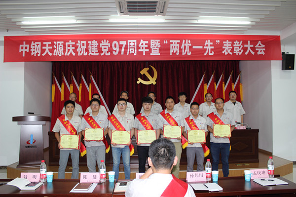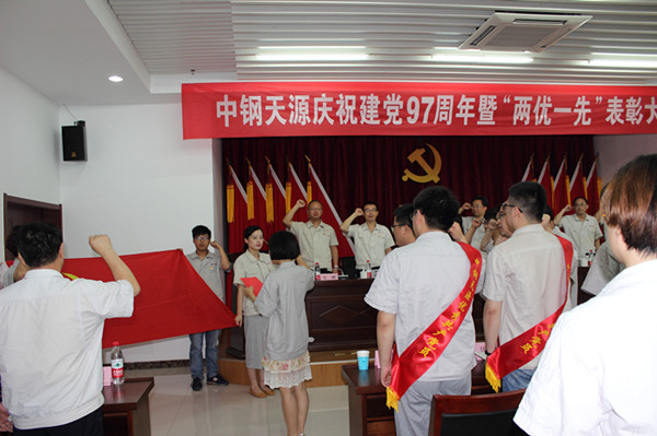 6月28日上午,中鋼天源在第一培訓教室隆重召開紀念中國共產黨成立97周年大會,表彰2017年度公司先進基層黨組織、優秀共產黨員、優秀黨務工作者。馬鞍山本部的公司領導班子成員、中層干部、受表彰的先進集體及個人、全體黨員共100余人參加會議。會議由公司總經理、黨委副書記毛海波同志主持。