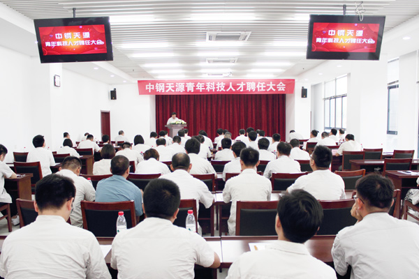 7月24日下午,中鋼天源在第 一培訓教室舉辦了隆重的青年科技人才聘任大會,公司領導及高管、中層干部、馬鞍山本部的青年科技人才和研發人員等80余人出席了會議,會議由公司黨委副書記、總經理毛海波主持。